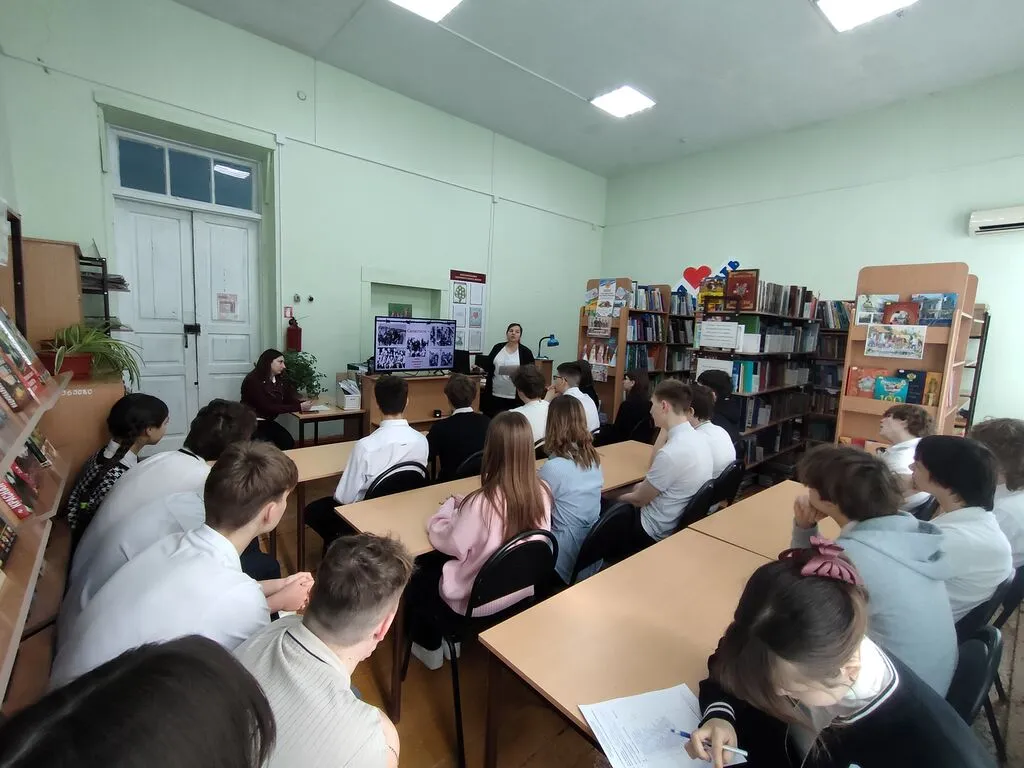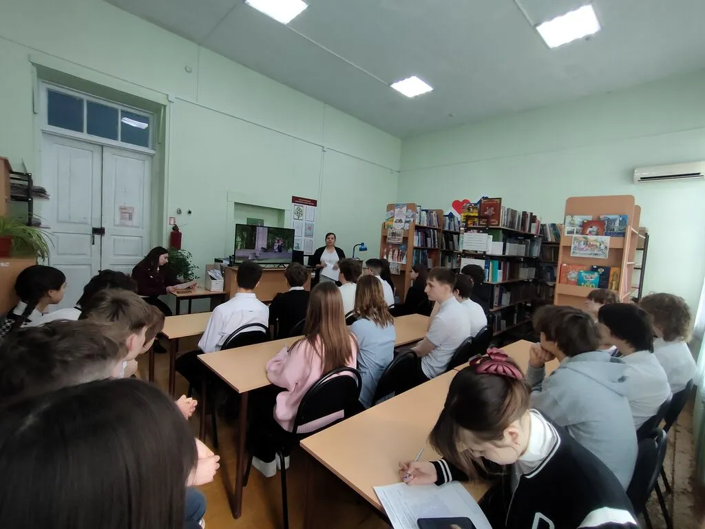 10 апреля 2026 года в межпоселенческой библиотеке для учащихся школы №3 был подготовлен и проведен урок мужества «Боль, которая опалила сердце». Библиотекарь кратко рассказал о значимых датах, связанных с памятью жертв геноцида и освобождением узников концлагерей, подчеркнув важность сохранения исторической памяти и необходимость помнить о страшных страницах прошлого, чтобы не допустить их повторения. Особое внимание было уделено судьбам детей, оказавшихся в плену у нацистов. Ученики увидели архивные фото и кадры кинохроники, которые наглядно показали ужасы лагерей смерти. В завершение мероприятия участники почтили память жертв геноцида и узников концлагерей минутой молчания. Учащиеся получили представление о масштабах трагедии концлагерей, прониклись сочувствием к жертвам геноцида, осознали важность сохранения исторической памяти и стремления к миру и взаимопониманию между людьми.