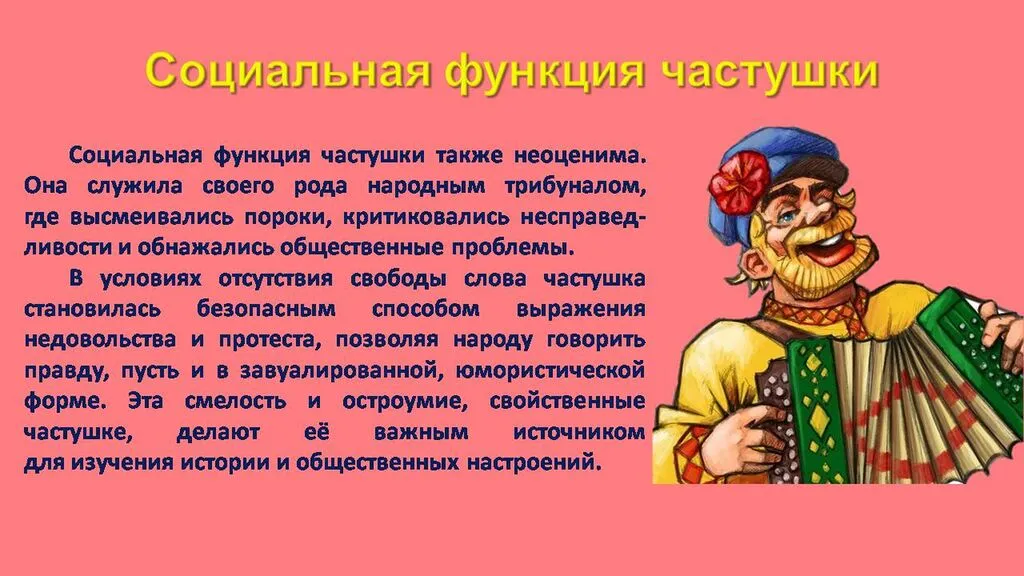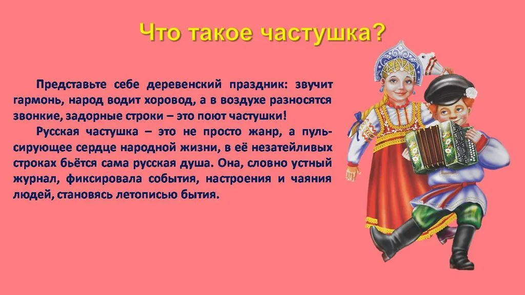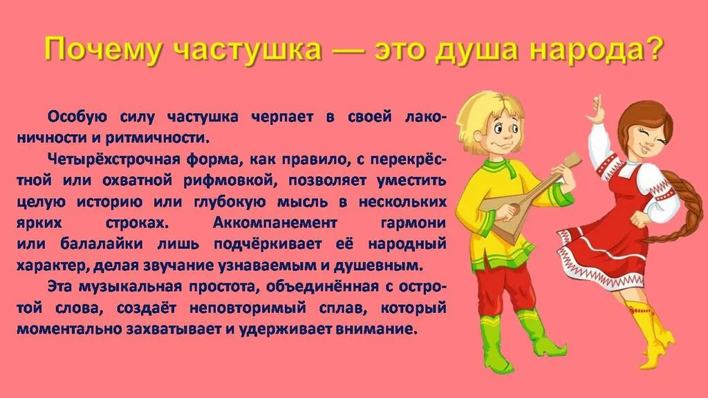 Русская частушка – это не просто жанр, а пульсирующее сердце народной жизни, в её незатейливых строках бьётся сама русская душа. Она, словно устный журнал, фиксировала события, настроения и чаяния людей, становясь летописью бытия. От весёлых переплясов до задушевных песен, от нежных признаний до едких насмешек – частушка охватывала весь спектр человеческих переживаний, делая их доступными и понятными каждому.