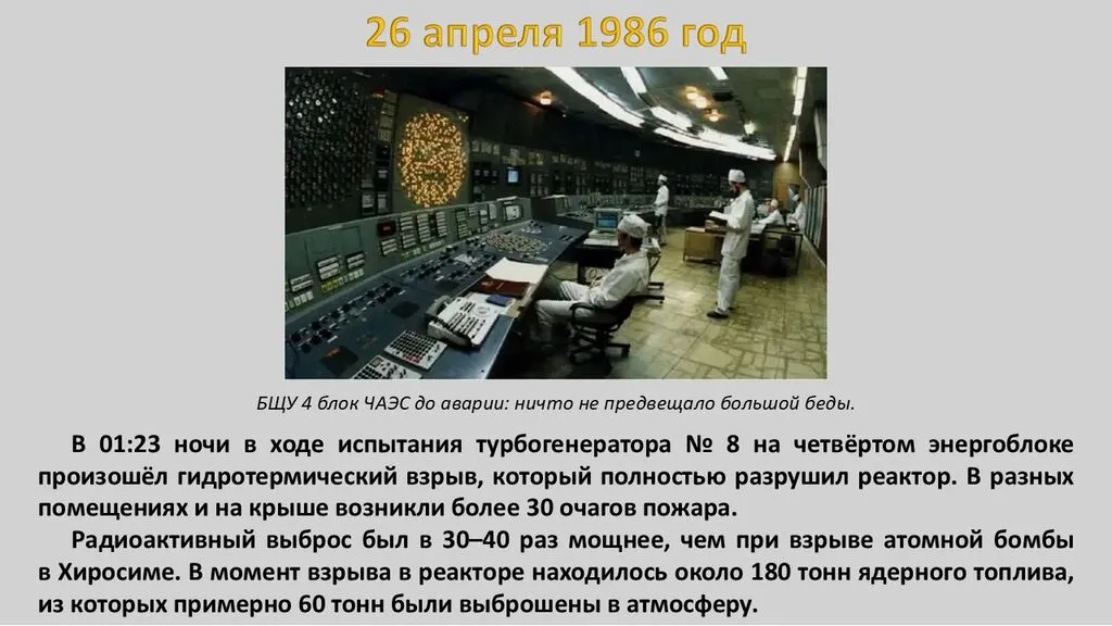 Чернобыльская катастрофа — одна из крупнейших техногенных аварий в истории, произошедшая 26 апреля 1986 года на четвёртом энергоблоке Чернобыльской АЭС. Она привела к масштабному выбросу радиоактивных материалов и имела долгосрочные последствия для окружающей среды, здоровья людей и международного восприятия ядерной энергетики. Вспомним несколько интересных и необычных фактов об этой трагедии.