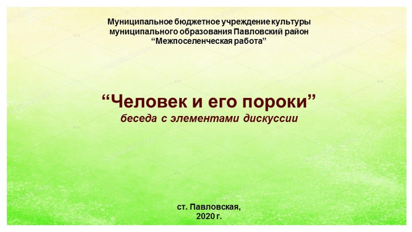 “Человек и его пороки” (беседа с элементами дискуссии)